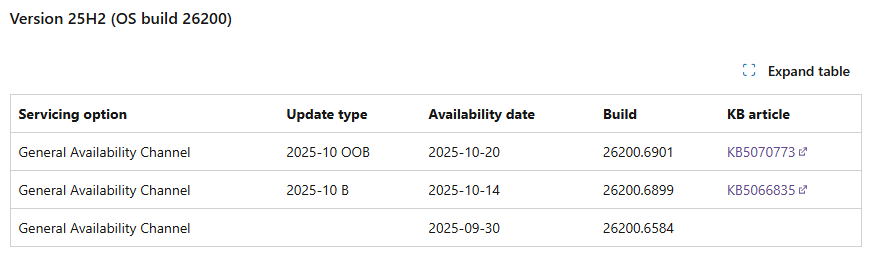 Windows 11 25H2, đã chính thức ra mắt vào cuối tháng 9 năm 2025 (OS build 26200.6584), là một bản cập nhật tập trung vào việc tinh chỉnh và nâng cao trải nghiệm AI thay vì mang đến một cuộc đại tu lớn về giao diện. Đối với người dùng đã ở phiên bản 24H2, đây thực chất là một gói kích hoạt (enablement package) nhỏ gọn, “mở khóa” các tính năng đã có sẵn. Các điểm nổi bật chính bao gồm Start Menu được thiết kế lại với khả năng tích hợp Phone Link sâu hơn và các tùy chọn hiển thị danh sách ứng dụng mới. Ngoài ra, phiên bản này tiếp tục đẩy mạnh trí tuệ nhân tạo với “AI Actions” trong File Explorer, tính năng tìm kiếm ngữ nghĩa (cho phép tìm file bằng mô tả) và nhiều cải tiến giao diện nhỏ như thông báo trên màn hình phụ. Quan trọng nhất, 25H2 thiết lập lại chu kỳ hỗ trợ, mang lại 36 tháng cập nhật cho các phiên bản Doanh nghiệp và Giáo dục.